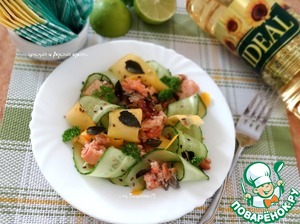 • Добавить к овощам форель, крупно-рубленный орех;