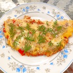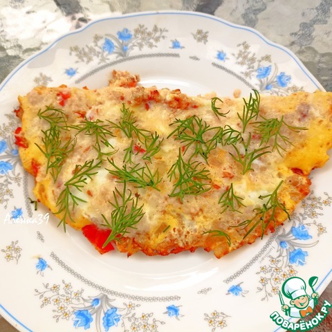И сверху выливаем вторую половину омлета. Закрываем крышку готовим до готовности (готовность определяем: когда при наклоне сковороды, вы не увидите остатков жидкости, тогда омлет уже готов). У меня готовился минут 15.