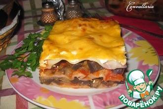 Посыпаем оставшимся сыром (0.5 стак. моцарелла) и отправляем в заранее разогретую духовку 175 град. на 35-40 минут.