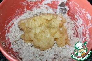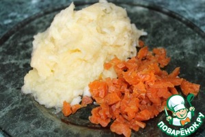 А пока натираем на мелкой тёрке очищенное яблоко и режем мелко курагу.