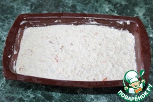 Выкладываем творожное тесто в форму, если силиконовая можно не смазывать ни чем, если другая, то немного смазать маслом.