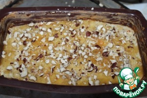 За 10 минут до готовности кекса смазать верх мёдом, посыпать рубленными орехами и поставить обратно в духовку.