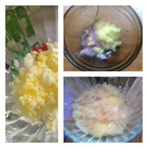 Все продукты трем на мелкой терке. Первый слой яйцо. Промазать заправкой. Далее смешать в пиале натертый лук и яблоко, добавить сок лимона (пару капель), чтобы яблоки не потемнели. Это наш второй слой.