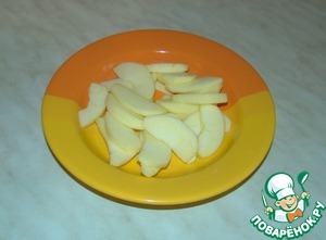 Яблоки очистим от кожуры и удалим сердцевину. Нарезаем тонкими ломтиками. Сбрызгиваем лимонным соком, чтобы не потемнели.