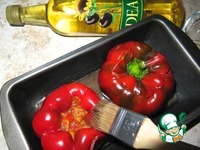 Сверху смазать перцы растительным маслом (я использую подсолнечное масло IDEAL), чтобы в процессе запекания перцы не потускнели. Отправить в разогретую духовку на 30 минут (до мягкости перца). |