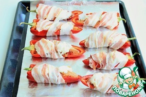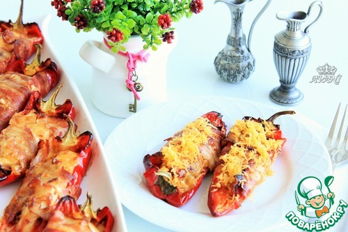Рецепт «Перцы с курицей и сыром в беконе»: