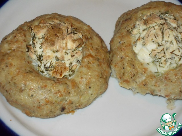 Интересная вариация на тему рыбных котлет. Простое приготовление, минимум ингредиентов, а в результате – вкусное нарядное блюдо. К тому же диетическое, т. к. «ватрушки» не жарятся, запекаются в духовке.