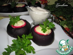 Поверх каждой свеклы положить по 1 ст. л. сметаны.