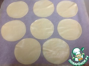 Замесить тесто: масло и воду вскипятить, добавить 1 ч. ложку соли и муку. Тесто поместить в холодильник на 30 минут, завернув в пищевую пленку. Раскатать тонко и вырезать кружки.