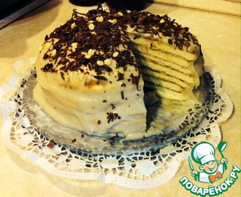 [+5]А.. Забыла. Добавила банан, крошку фундука в прослойки, крем сделала лимонным с цедрой. Очень гармонично! хочу попробовать кофейный и ореховый вариант.