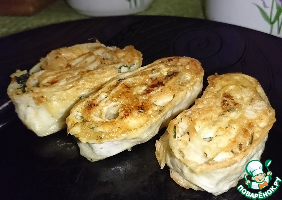 Рецепт «Рулетики из лаваша с курицей и сыром»: