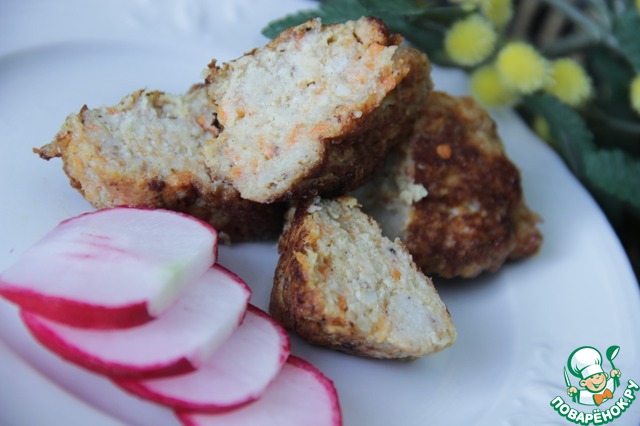 В рыбный фарш добавить лук, морковь, панировочные сухари, яичный белок, сливки. Посолить и поперчить. Убрать фарш в холодильник на 1 час.
