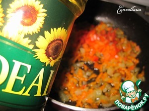 В сковороде разогреть растительное масло и обжарить овощи до мягкости. -