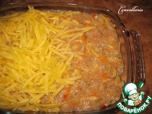 Затем идет слой фарша с овощами и опять слой оставшейся тыквы.