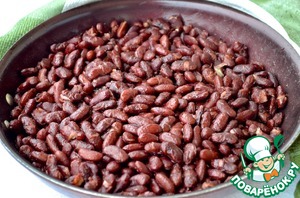 1. Залить фасоль водой и оставить на 8-10 часов. Воду слить, снова залить фасоль водой и поставить на огонь. Довести до кипения, снизить огонь и варить полтора часа до мягкости.