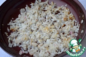4. Лук мелко порезать и потушить в растительном масле до прозрачности. Добавить специи и готовить еще минуту.