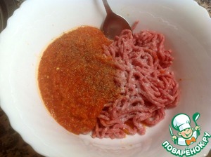 Смешать полученную массу из болгарского перца с фаршем из говядины. Соль-перец по-вкусу