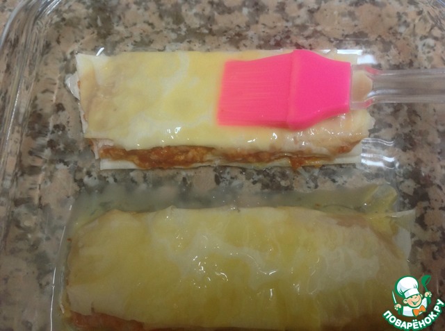 Смазав последний слой теста яйцом, отправляем пироженое в духовой шкаф на 20 минут при температуре 180 градусов, до румяной корочки.