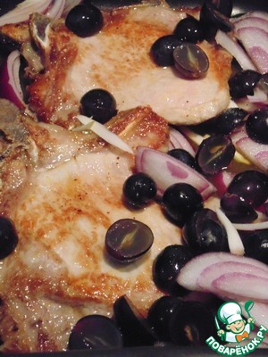 Какое прекрасное блюдо!!! Честно признаюсь, готовила в сковороде без крышки до выпаривания жидкости, без духовки. Получилось примерно как на фото, у меня был карбонат. Сама мяса не ем, но сынуля был в восторге! Спасибо!!!