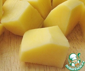 Картофель почистить, нарезать небольшими кубиками и отварить в подсоленной воде до готовности.