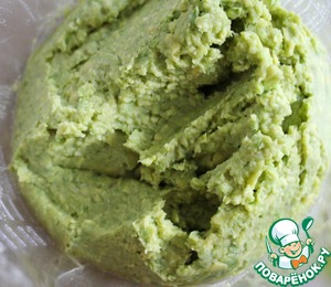 Картофель, горошек, авокадо, чеснок положить в чашу блендера, добавить мяту и соль, тщательно перемолоть.