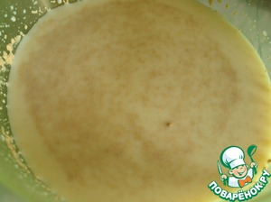 Дрожжи развести в теплом молоке, добавить сахар, соль, 300 г муки, перемешать и поставить в тепло на 1 час.