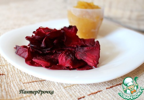 Получаются вот такие красивые свекольные чипсы, похожие на лепестки роз.