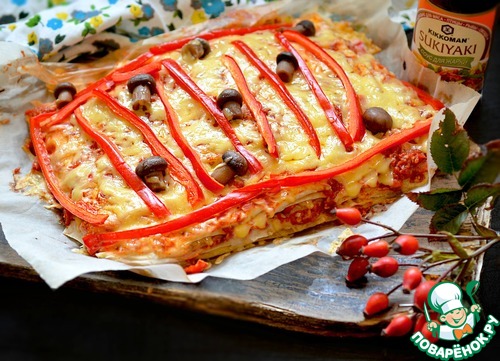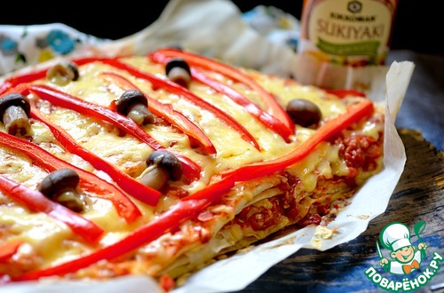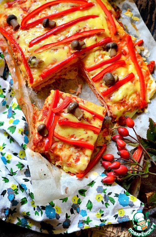 Мало теста и много начинки, идеальный рецепт для праздников, такое блюдо любят все! А готовить его очень быстро и просто. Палочка - выручалочка, когда у вас неожиданные гости. Не знаю, как у вас, но у моих детей самое любимое блюдо - пицца. Сколько раз, наготовив на праздник кучи салатов, интересных блюд, а они ничего этого не едят. Просят приготовить пиццу. На праздничный стол подать пиццу как-то не то, а вот пиццу -торт, самое оно!