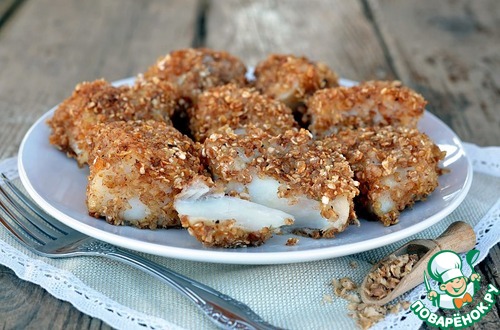 Благодаря необычной панировке, кубики трески становятся необыкновенно хрустящими. Их с удовольствием съедят на завтрак как взрослые, так и дети. Очень быстро и вкусно.