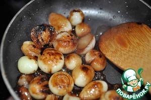 Самое "сложное" - почистить лук. Автор рецепта рекомендует для облегчения чистки предварительно на час залить лук водой. -