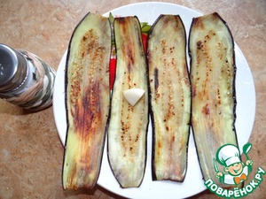Остывшие баклажаны слегка натереть чесноком и подсолить;