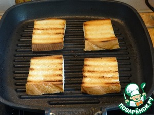 Хлеб поджарить на сковороде-гриль;