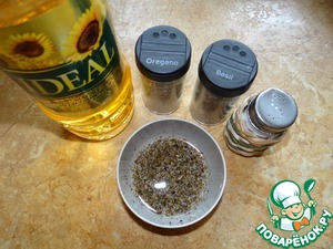 Приготовить намазку: смешав соль, орегано, базилик и масло (2ст. л.);