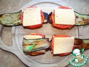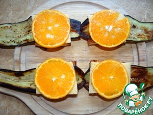 На баклажан - сыр, затем мандарин; -