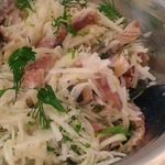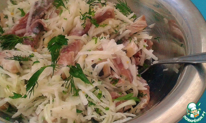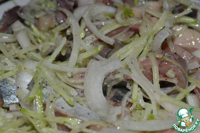 Необычное сочетание редьки и слабосоленой сельди в этой закуске очень гармонично. Редька придает закуске некоторую пикантность и свежесть.