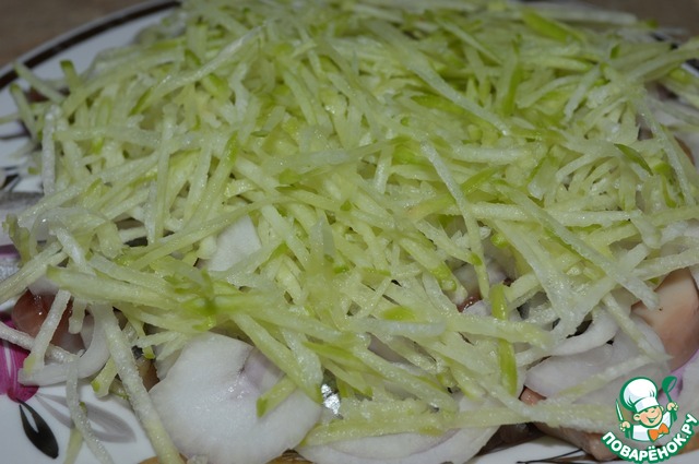 Редьку очистить и натереть или нарезать тонкими полосками.