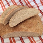 Горячий хлеб трудно нарезать, поэтому я использую специальный нож для хлеба и режу распиливающими движениями, получаются аккуратные кусочки.