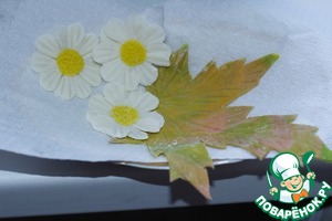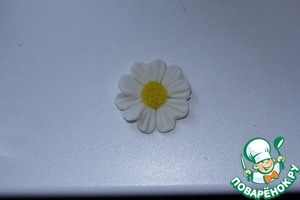 2) Для ромашек у меня есть вот такая формочка. Раскатываем кусочек белой мастики, выдавливаем ромашки.