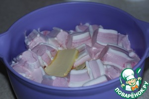 1) 200 грамм зефира маршмеллоу помещаем в глубокую посуду. Добавляем сливочное масло, отправляем в микроволновку.
