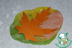 Формы для листьев у меня нет, я вырезала его из картона. Ножом обвела лист