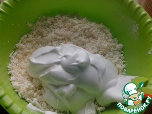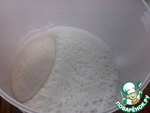 С лимона натереть 1 ч. л. цедры и выжать 1 ст. л. сока. Белки взбить с сахаром, добавив выжатый сок лимона, в крепкую пену.