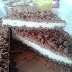 Своеобразный по вкусу пирог, с приятным шоколадным ароматом. Нижнее тесто забирает влагу из начинки и перестаёт быть сыпучим, в то же время не становясь размокшим. Верхний слой теста хрустящий и очень рыхлый. Начинка мягкая, слегка пружинистая.