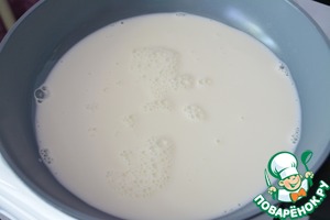 Ставим на огонь сковороду и наливаем молоко.
