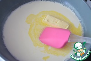 Когда молоко начнет закипать, добавляем сливочное масло.