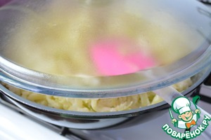 После того, как масло растопится, выкладываем нашу капусту. Тушим минут 7.
