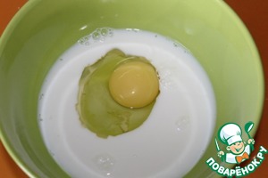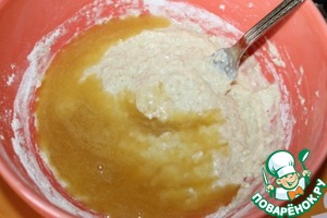 Смешиваем мучную смесь со взбитым молоком с яйцом, перемешиваем.