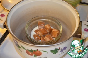 Карамель смешиваем с 1 ст л молока и ставим на водяную баню