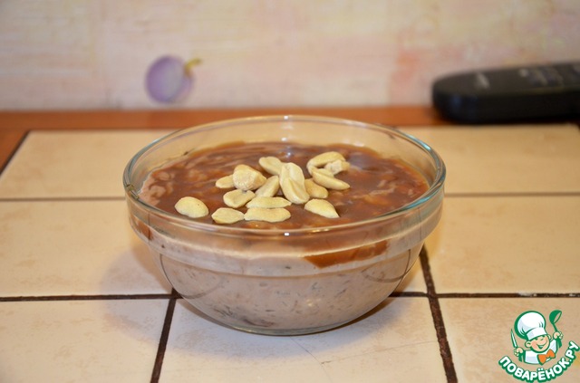 Выкладываем кашу в тарелку, поливаем карамелью и выкладываем сверху арахис. Не бойтесь брать соленый арахис, соль не почувствуется. Приятного аппетита!!!
