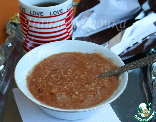 Снимаем кашу с огня, добавляем шоколад и перемешиваем