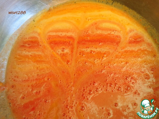 Кастрюлю с соком ставим на средний огонь и доводим до кипения. С закипевшего сока снимаем пенку.